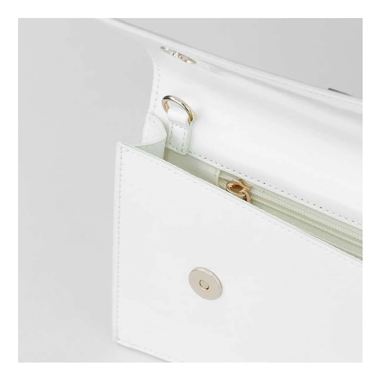 Bolso De Mano Estilo Sobre Modelo Olivia De Lodi Acabado En Efecto Charol De Color Blanco. Su Diseño Versátil Incluye Un Asa Multiposición Extraíble Para Llevarlo Cruzado. Con Un Logo Distintivo Metálico Dorado, El Interior Forrado Y El Cierre Metálico, Este Bolso Combina Estilo Y Funcionalidad Con Medidas Ideales De Alto X Ancho X Fondo 15.5 X 27.3 X 3.5 Cm.